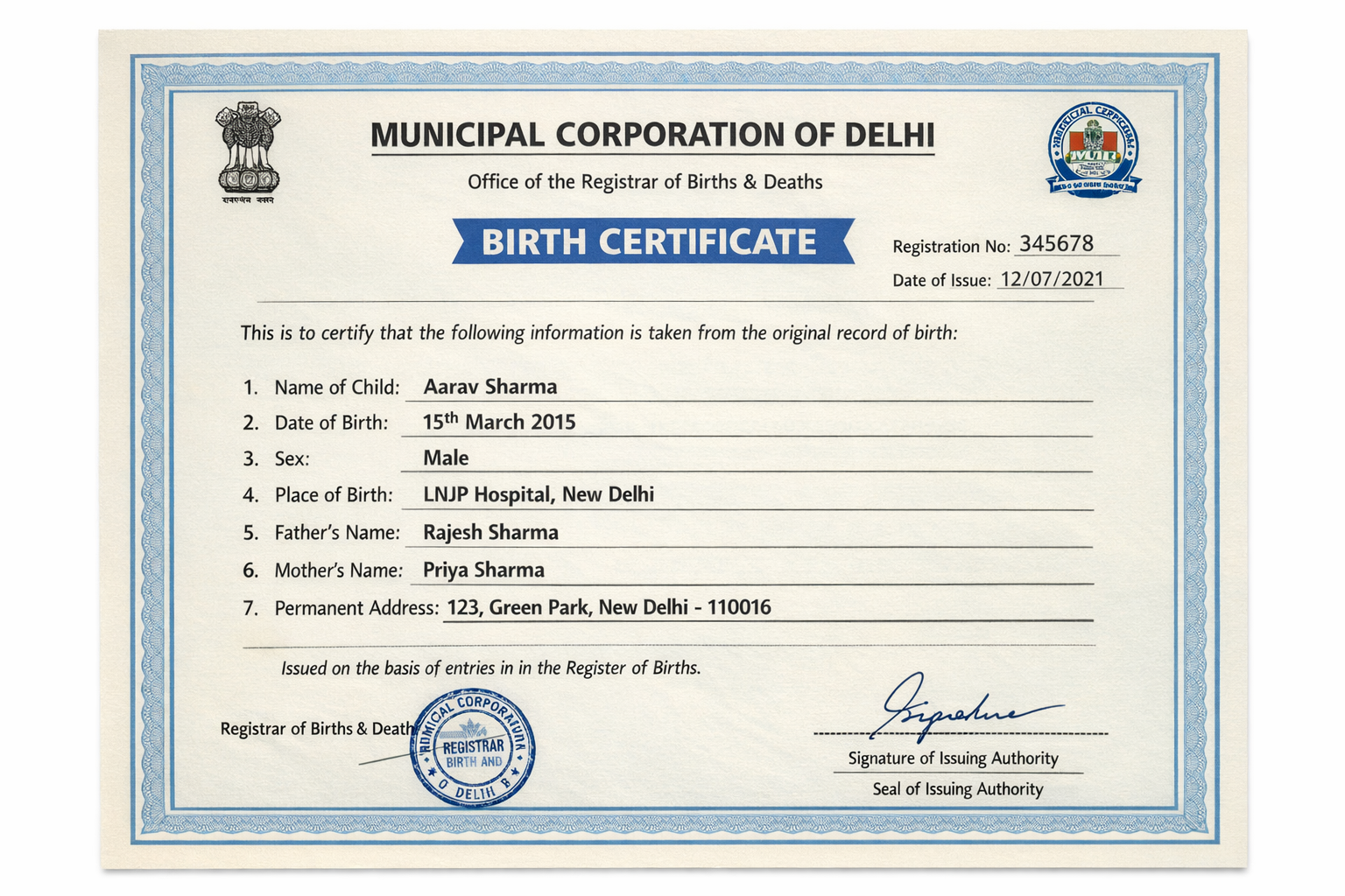 | 3 | Birth certificate | Birth Certificate is an official government document confirming a child’s date, place of birth, and parents’ details | View |